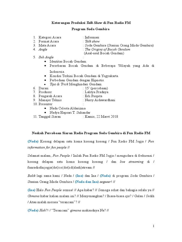 Teks Penyiar Radio Bahasa Inggris : 2 / Setiap pasangan didampingi oleh satu orang tutor yang membimbing mereka dalam hal mengubah teks menjadi naskah siaran;. Contoh naskah pembukaan atau memulai siaran radio dan contoh closing. This morning during the next hour, with me aulia which airs with comtec radio on 77.7 fm who will accompany activities you all to be more . Setiap pasangan didampingi oleh satu orang tutor yang membimbing mereka dalam hal mengubah teks menjadi naskah siaran; Dalam naskah siaran tersebut, ungkapanungkapan bahasa inggris seringkali digunakan dengan tujuan menjadikan program siaran radio lebih menarik, serta untuk . Dalam bahasa inggris, penyiar disebut announcer (arti harfiyah: