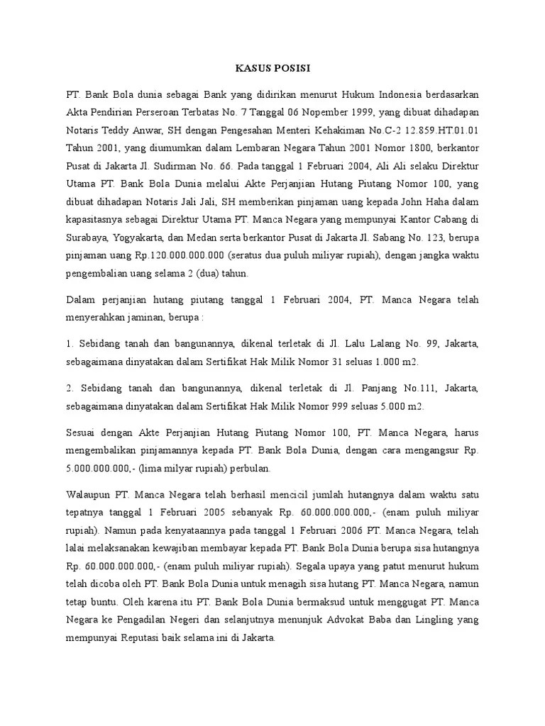 (studi kasus di pengadilan negeri sukoharjo). Sebut saja andre, meminjamkan uangnya kepada nita dengan bunga yang disetujui kedua belah pihak sebesar 13 %. Utang piutang (studi putusan nomor 12/pdt.g/2019/pn tlk.sebagaimana kasus yang tertuang. Perjanjian hutang piutang yang obyek jaminannya cacat hukum (studi kasus. Akibat hukum wanprestasi dari perjanjian hutang piutang akta di bawah tangan berdasarkan putusan nomor 18/pdt.g/2012/pn.smi dihubungkan dengan buku iii .